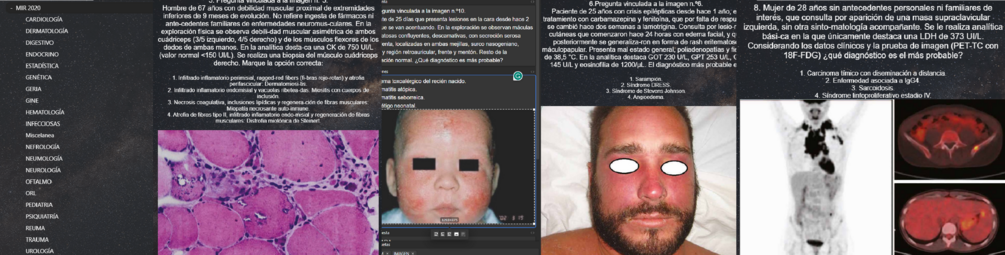 Revisa todas las preguntas del examen MIR, incluyendo las preguntas de imagen, cada una con sus opciones de respuesta, la respuesta correcta y una explicación asociada