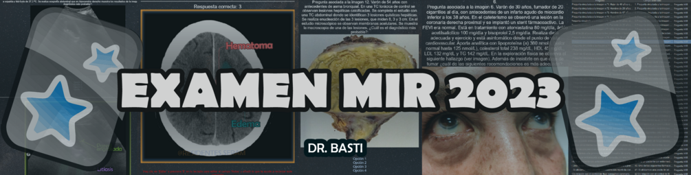 Revisa todas las preguntas del examen MIR, incluyendo las preguntas de imagen, cada una con sus opciones de respuesta y la respuesta correcta